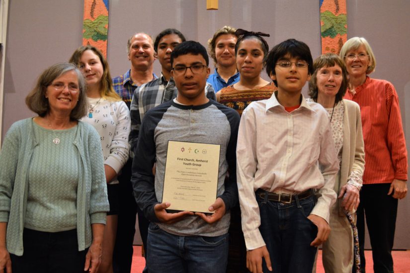 The Interfaith Opportunities Network gave its Joan Lindeman Award to the Youth Group in recognition of the young people’s efforts to learn about the world’s rich variety of religious traditions. World Religions has been the study theme this year for the group, which is led by John Aierstuck.